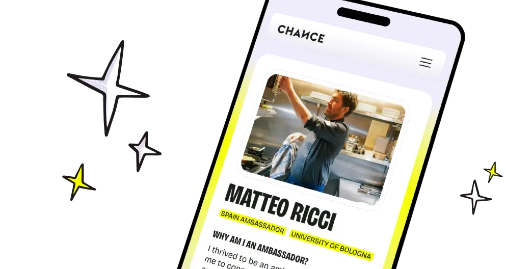 Our intelligent platform matches students' specific career aspirations with a global network of professionals (the Chance Collective members) based on their backgrounds. Once matched by our algorithm, members can step in to provide targeted support, transforming a simple request for help into a life-changing career breakthrough.