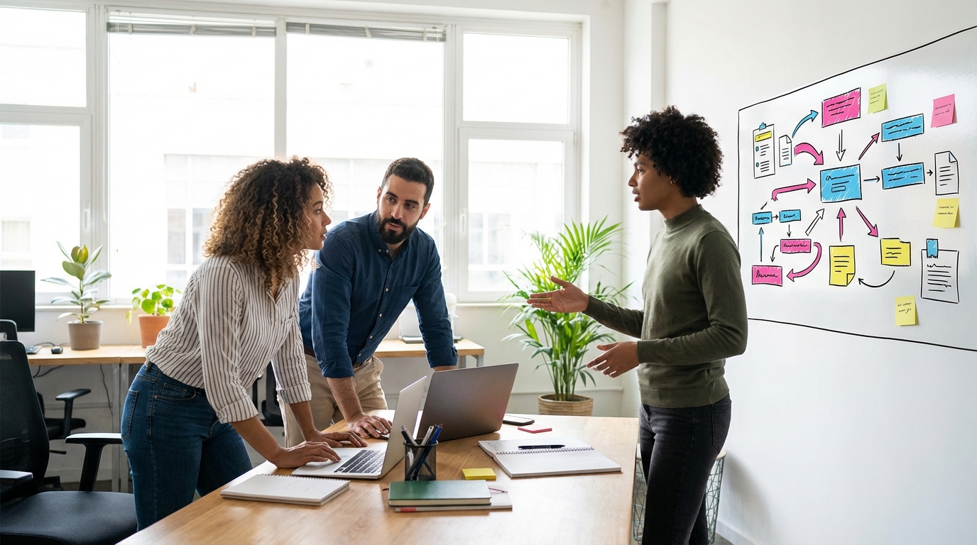 Sur le terrain, on ne “code” pas dans le vide. On travaille avec des client·es, des équipes, parfois plusieurs projets en parallèle. Cela commence souvent par se synchroniser, puis vérifier qu’on a bien compris.